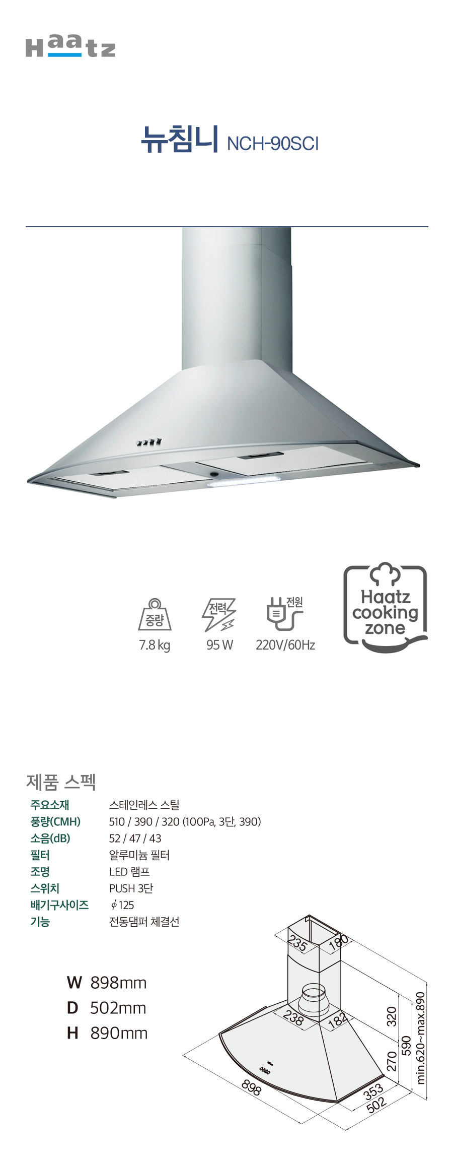 위덱(BS) - 하츠 주방후드 뉴침니 (NCH-90SCI) + 인덕션 부띠크 (IH3606TTLW)