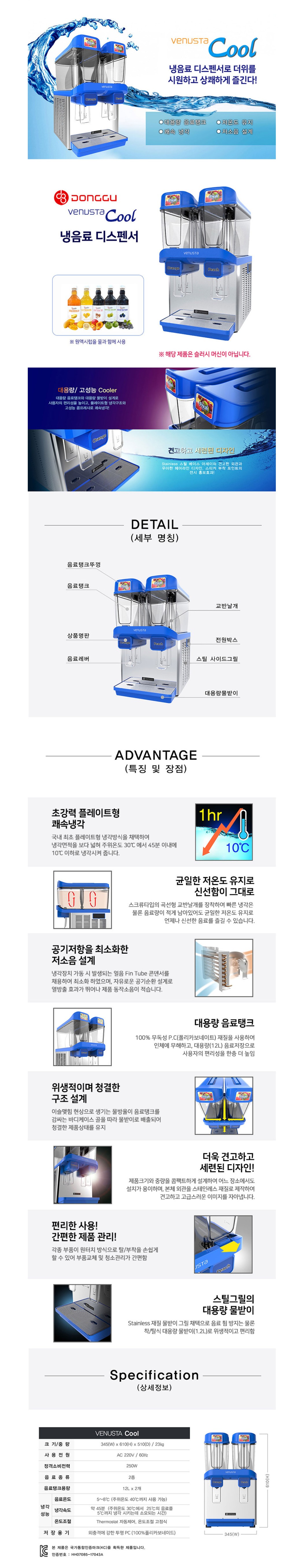 | 제품타입 | 냉음료 디스펜서 (슬러시 머신이 아닙니다) |